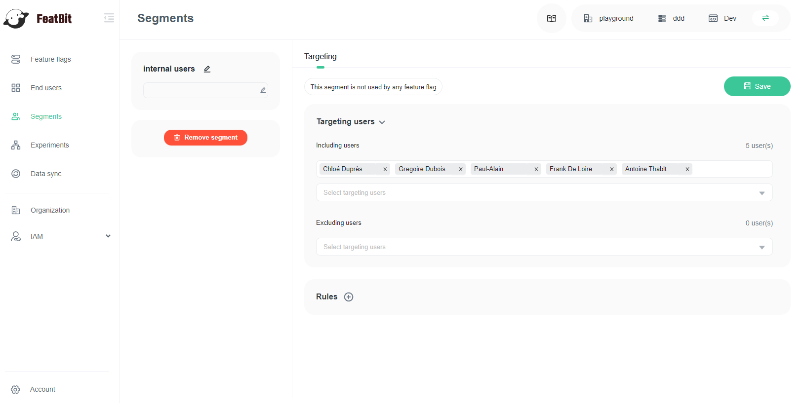 Beta testing with feature management (opens in a new tab) is far less painful than without. In a feature management setting, developers build the new incomplete feature — while attaching a feature flag to it, of course — and then empower product managers to release it to select beta users. In addition to controlling the beta test itself, PMs can also control who to include in the beta group. With PMs thus empowered, developers can spend less time administering beta tests and more time building high-value functionality. And both parties can manage all of this in the FeatBit dashboard.